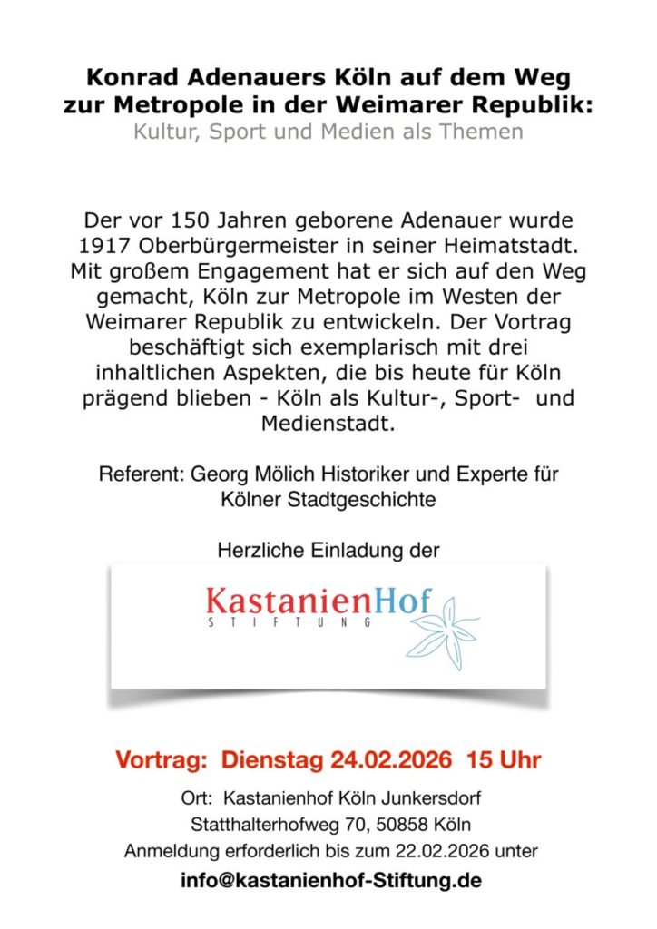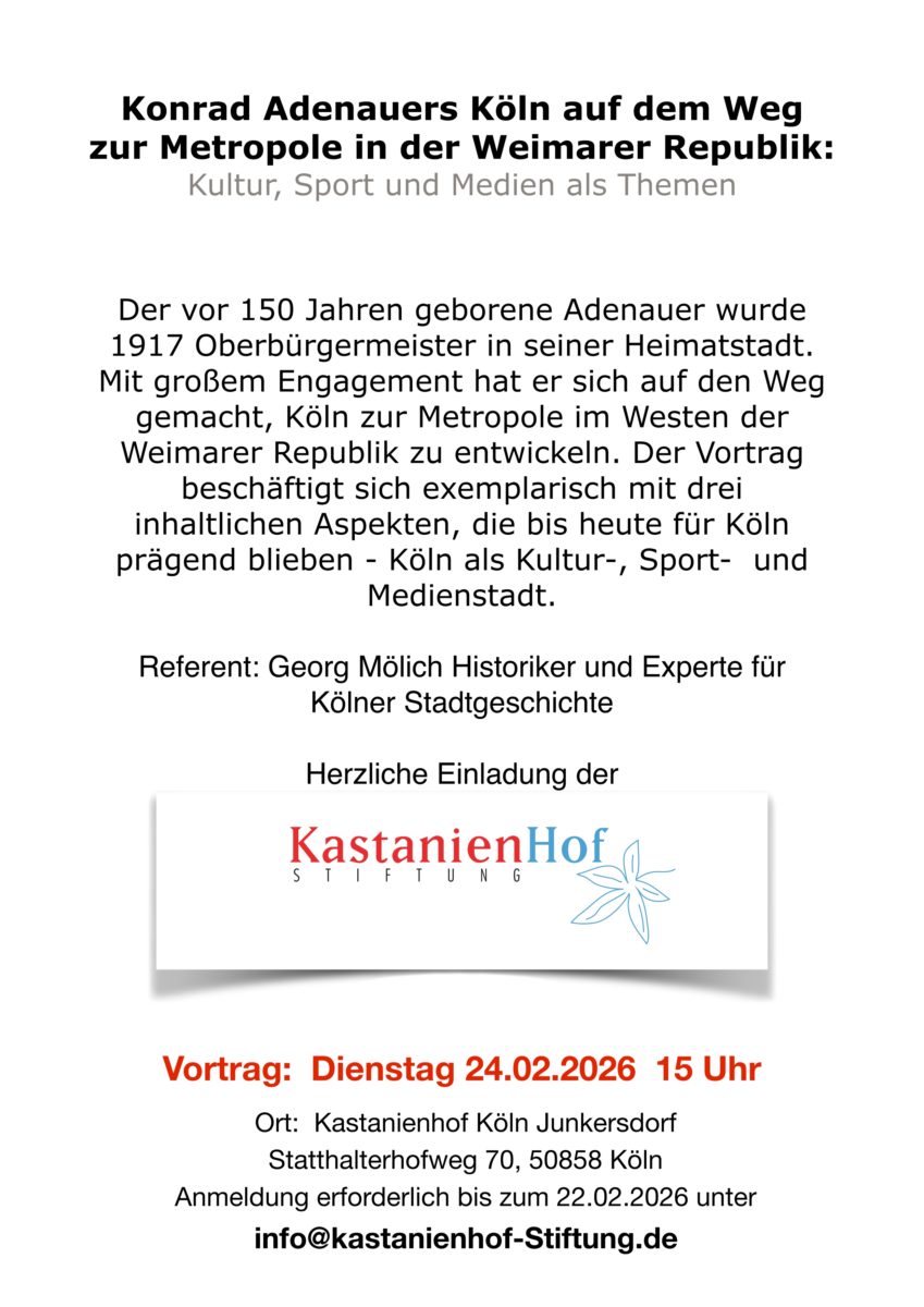 Vortrag von Georg Mölich über Konrad Adenauers Köln auf dem Weg zur Metropole in der Weimarer Republik