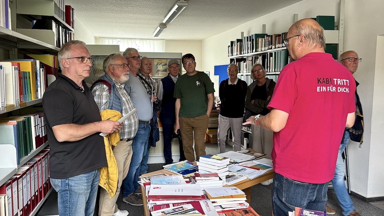 Erster Programmpunkt war die Besichtigung der KAB-Zentrale im Kettelerhaus. Hier erfuhren wir Spannendes über die Entstehung und Geschichte des Hauses, seine Nutzung in der Zeit des Nationalsozialismus sowie den Neuanfang nach 1945 bis heute.