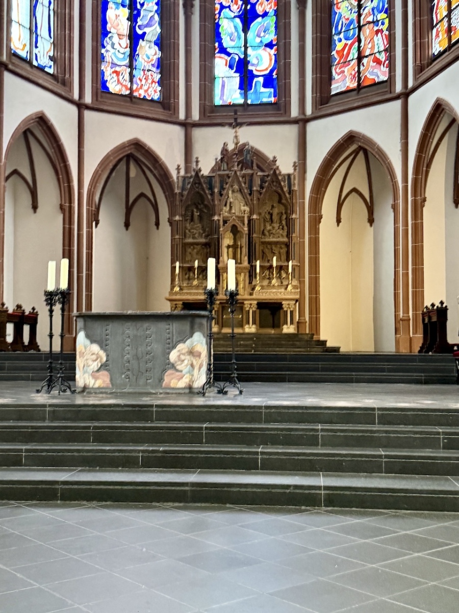 Weiter ging es zur Agneskirche, wo uns bereits Peter Otten erwartete. Er berichtete über die Geschichte der Kirche und führte uns auch in die Krypta, die uns einen besonderen Einblick gewährte.