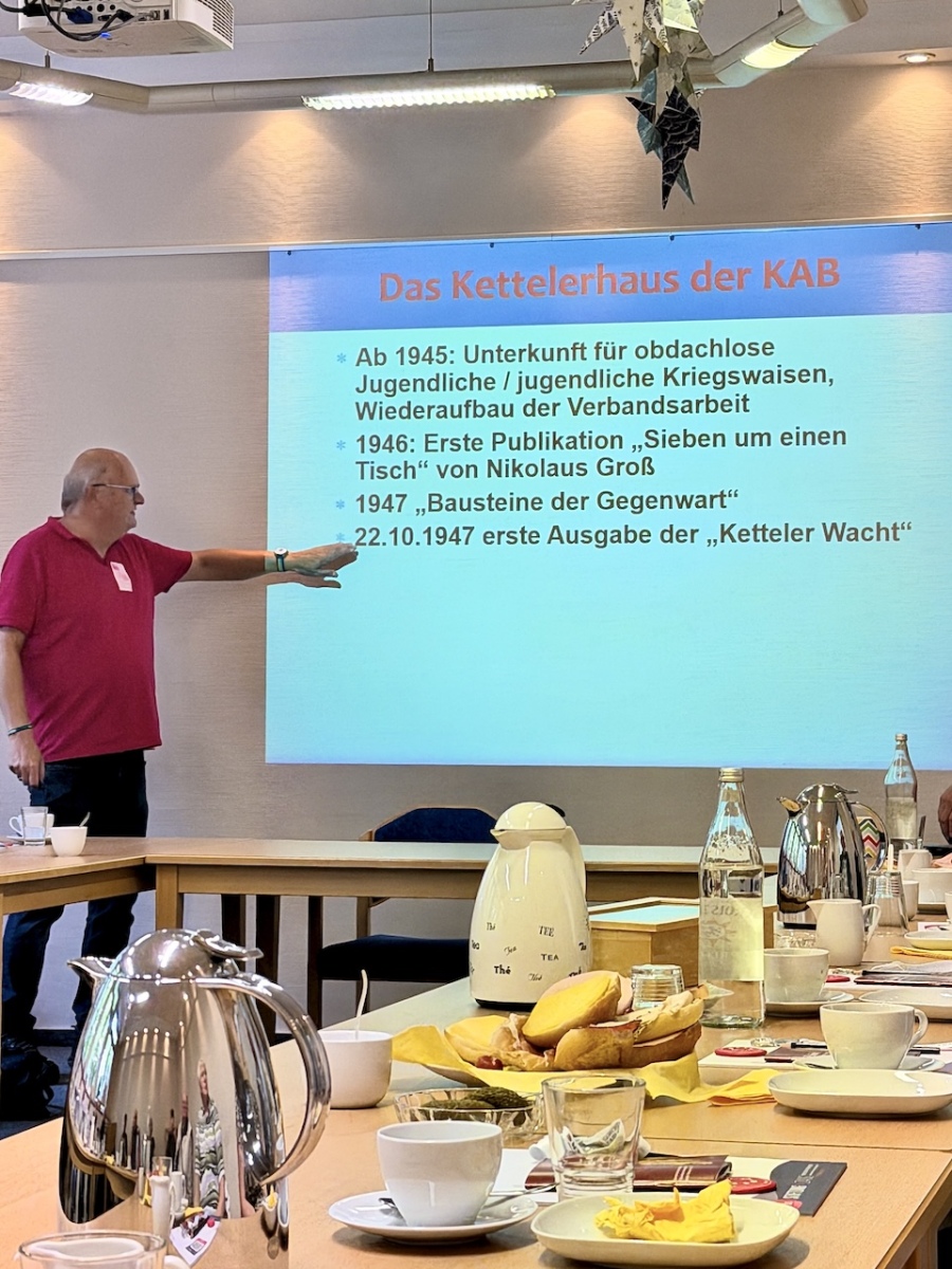Erster Programmpunkt war die Besichtigung der KAB-Zentrale im Kettelerhaus. Hier erfuhren wir Spannendes über die Entstehung und Geschichte des Hauses, seine Nutzung in der Zeit des Nationalsozialismus sowie den Neuanfang nach 1945 bis heute.