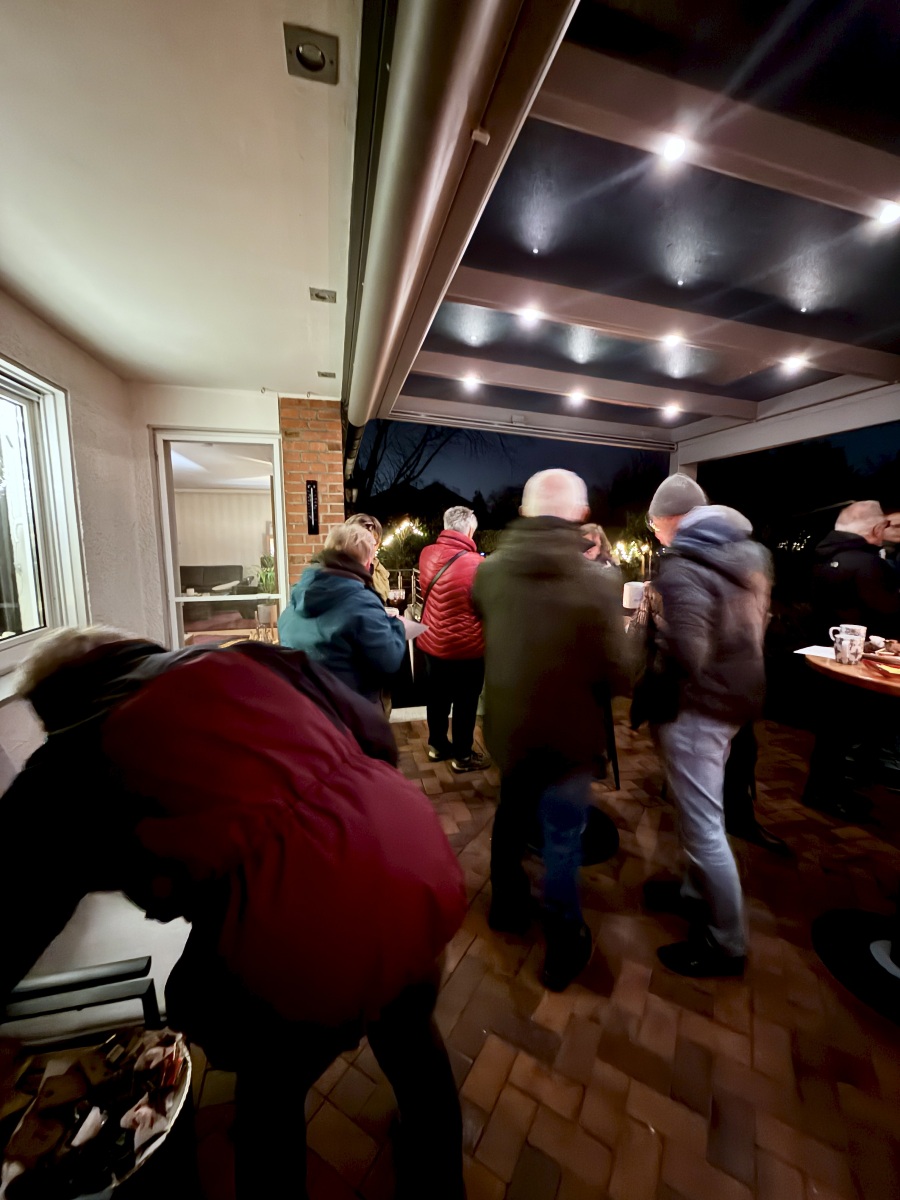 Anschließend ging es weiter zum zweiten Fenster bei Familie Rudolphi. Auch hier stand eine adventliche Geschichte im Mittelpunkt, ergänzt durch das gemeinsame Singen von Adventsliedern. Bei Glühwein und Plätzchen klang der Abend in gemütlicher Runde aus.