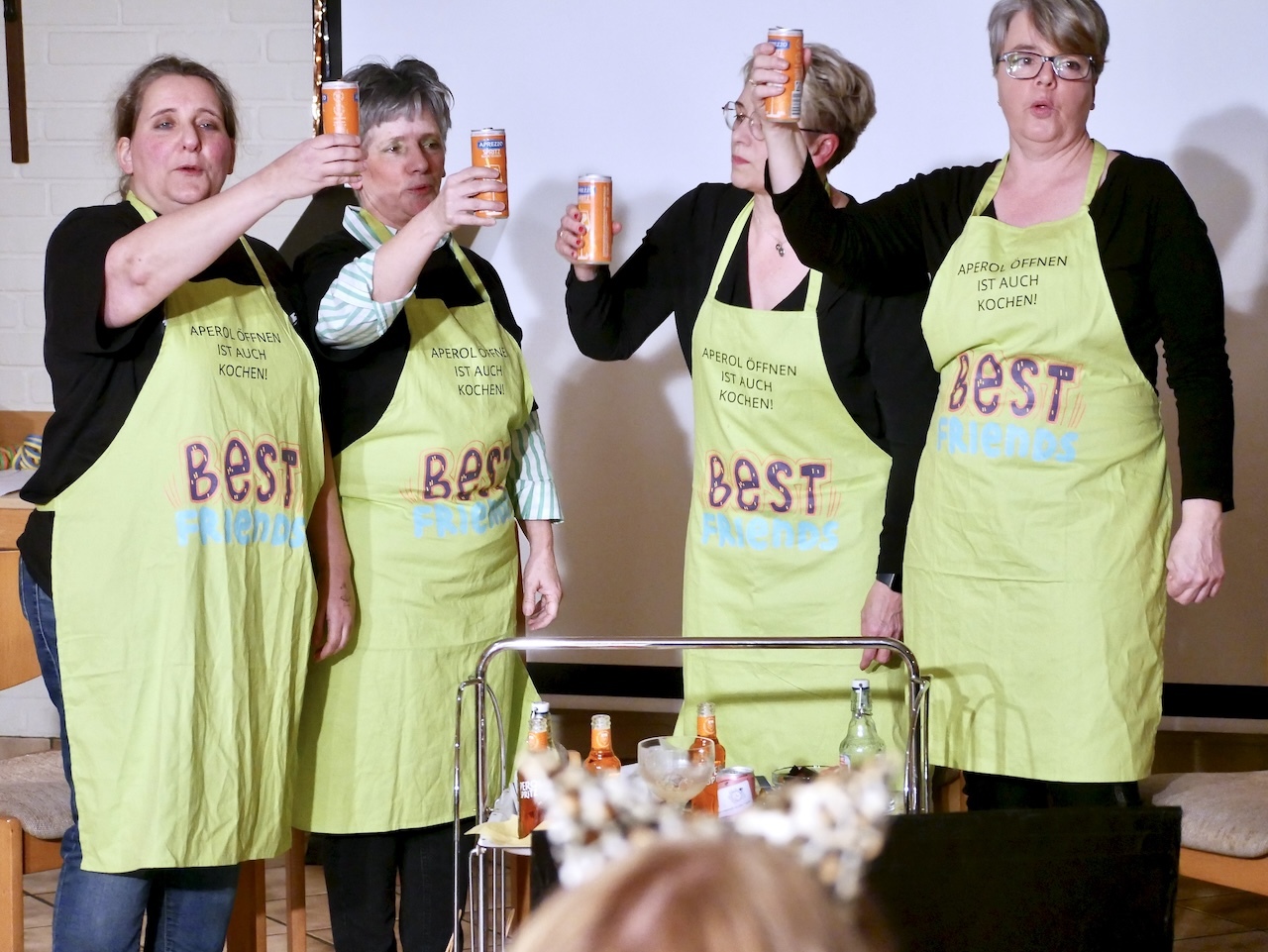 Den Auftakt machten die Lisbeth-Singers, die das Publikum sofort mitrissen. Ihnen folgte Rollo, der Obermessdiener, der mit viel Humor für erste Lacher sorgte. Anschließend erlebten die Besucher einen unterhaltsamen Frauenabend, bevor der Gemeinderat seine Vision einer reinen Frauen-Kirche präsentierte – ein Programmpunkt, der für besondere Heiterkeit sorgte. Musikalisch ging es weiter mit Medley 4 Twins, bevor ein kleiner Junge aus Spellen auf amüsante Weise von seinem Kirchenbesuch im Alter von acht Jahren berichtete. Frau Eierschmalz und Frau Sauerkraut nahmen das Publikum anschließend mit auf eine Reise durch YouTube und Künstliche Intelligenz.