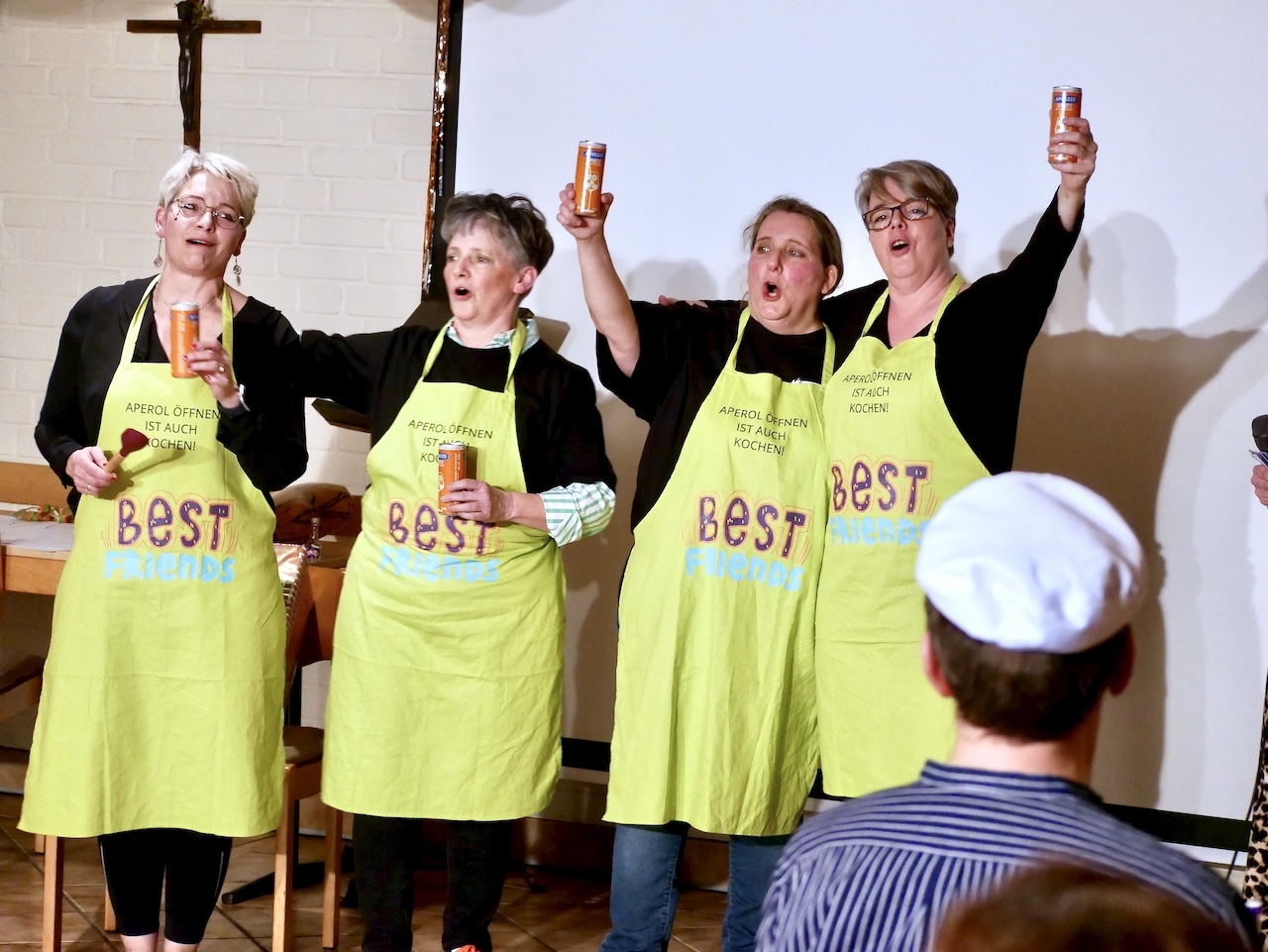 Den Auftakt machten die Lisbeth-Singers, die das Publikum sofort mitrissen. Ihnen folgte Rollo, der Obermessdiener, der mit viel Humor für erste Lacher sorgte. Anschließend erlebten die Besucher einen unterhaltsamen Frauenabend, bevor der Gemeinderat seine Vision einer reinen Frauen-Kirche präsentierte – ein Programmpunkt, der für besondere Heiterkeit sorgte. Musikalisch ging es weiter mit Medley 4 Twins, bevor ein kleiner Junge aus Spellen auf amüsante Weise von seinem Kirchenbesuch im Alter von acht Jahren berichtete. Frau Eierschmalz und Frau Sauerkraut nahmen das Publikum anschließend mit auf eine Reise durch YouTube und Künstliche Intelligenz.