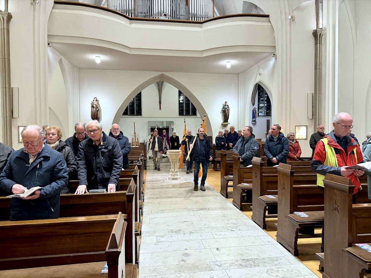 In der Kirche St. Johannes trafen wir schließlich auf sechs weitere Teilnehmer aus unserem KAB Verein, die mit PKW’s nach Eppinghoven kamen, so dass wir mit 20 Teilnehmern aus unserer KAB zusammen mit den Teilnehmern der anderen KAB-Vereine gemeinsam dort zum Abschluss einen Gottesdienst als Zeichen für Frieden, Solidarität und Gemeinschaft feierten.