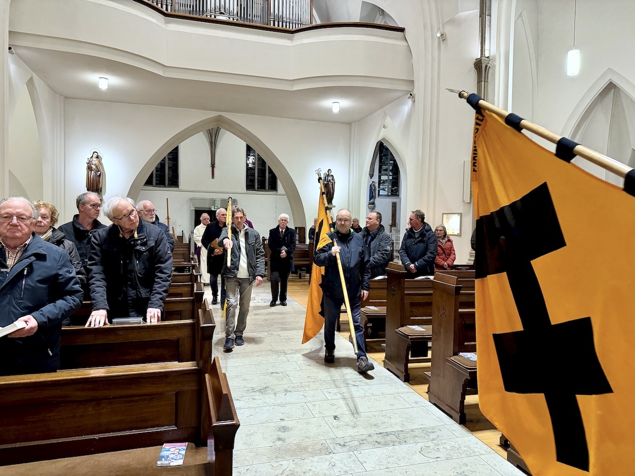 In der Kirche St. Johannes trafen wir schließlich auf sechs weitere Teilnehmer aus unserem KAB Verein, die mit PKW’s nach Eppinghoven kamen, so dass wir mit 20 Teilnehmern aus unserer KAB zusammen mit den Teilnehmern der anderen KAB-Vereine gemeinsam dort zum Abschluss einen Gottesdienst als Zeichen für Frieden, Solidarität und Gemeinschaft feierten.