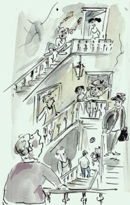 Gerda Laufenberg, Kölner Malerin, Illustratorin und Autorin, hat in ihren Bildern immer wieder das Thema Köln aufgegriffen. Für die Ausstellung bei den Beginen wird sie bewusst auf diese Arbeiten zurückgreifen.