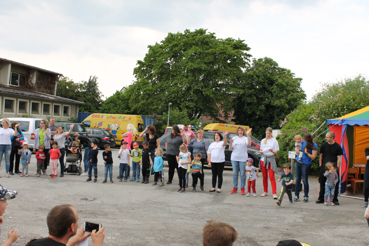 Nach ein Paar Wortes der Quartiersentwicklerin Melanie Reuter und des Stellvertretenden Bürgermeister Herrn Andreas Rödel haben die Kinder des DRK Familienzentrums Kita Ottelau zwei eingeübte Lieder gesungen und getanzt. Die Besucher und Besucherinnen wurden von den Liedern mitgerissen und einige stimmten beherzt mit ein.