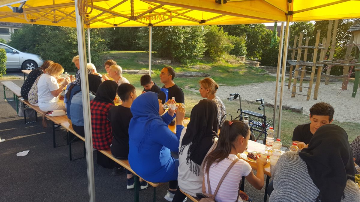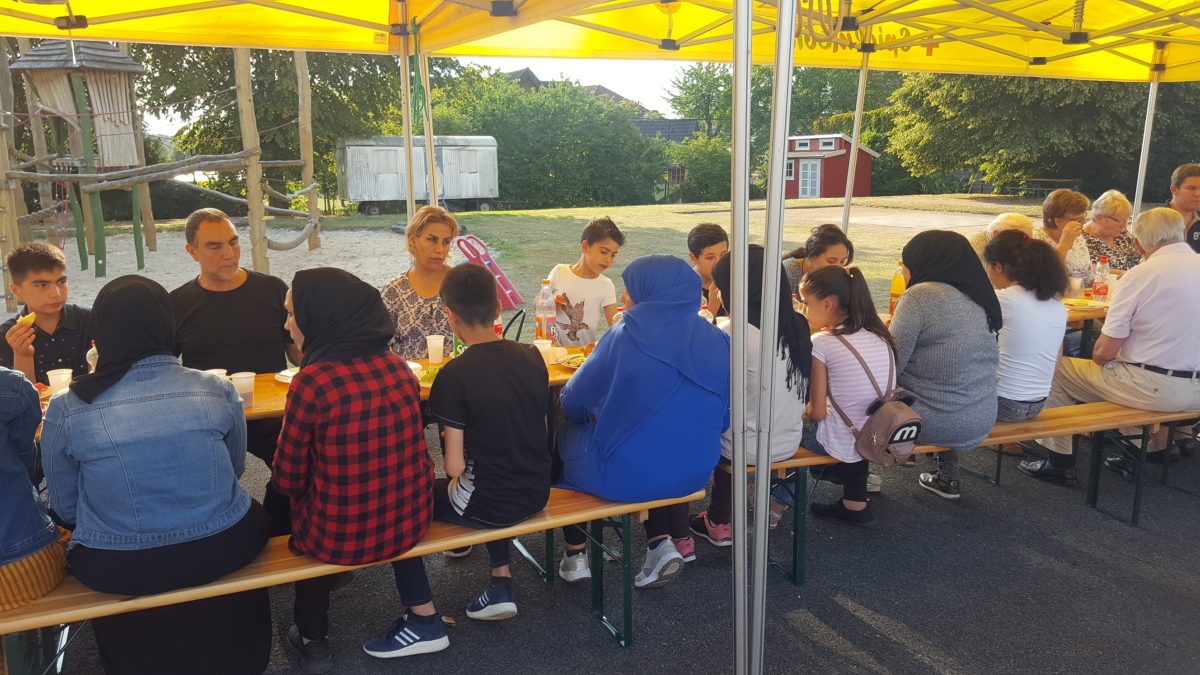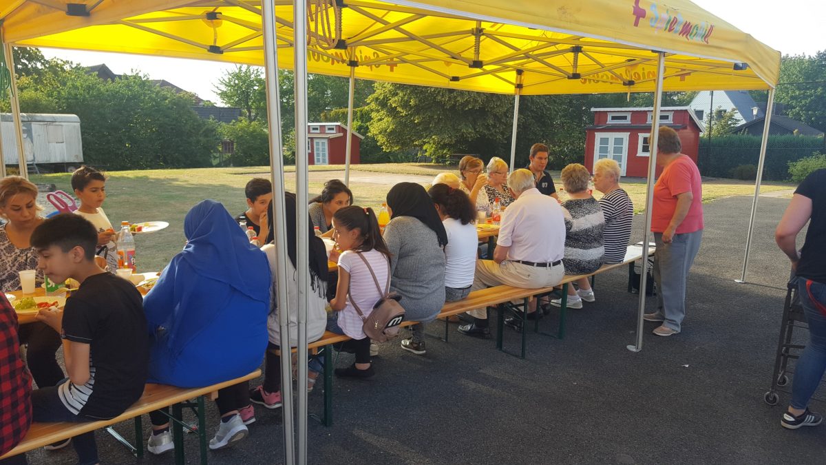 Bei schönem sonnigem Wetter trafen sich Bewohnerin und Bewohner der Ottelau auf dem Gelände des Mehrgenerationenhauses „Alte Schule Ottelau“ zum gemeinsamen Grillen. Das Mehrgenerationenhaus sponserte die Getränke und die Würstchen. Jeder Besucher brachte eine Kleinigkeit für das Buffet mit. Zu unserer großen Freude kamen auch einige Familie aus der Zentralen Unterbringungseinrichtung für Flüchtlinge (ZUE) gemeinsam mit ihrer Umfeldmanagerin zu unserem Nachbarschaftsgrillen.