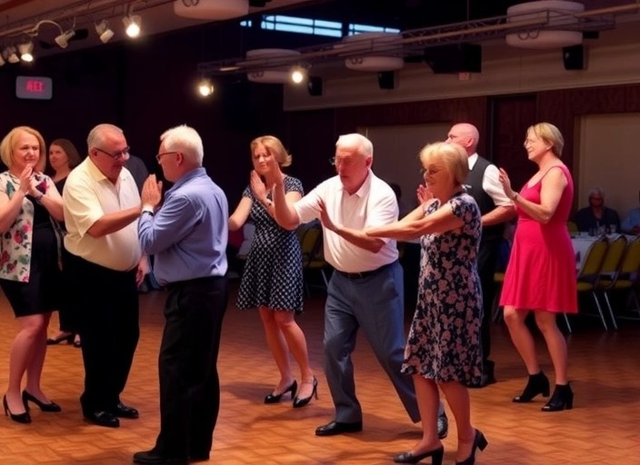 Der Kurs richtet sich speziell an Seniorinnen und Senioren, die sich mit gymnastischen Übungen zu Tanzmusik und mit Party/Reihentänzen bewegen möchten. Der Kursus ermöglicht den Teilnehmern sich 30 Minuten mit gymnastischen Übungen zu Tanzmusik und 30 Minuten mit Party/Reihentänzen – ohne Partner – zu bewegen.